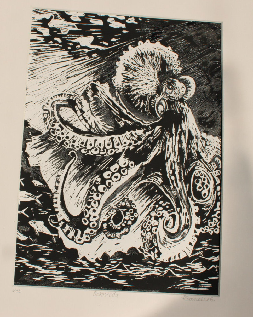 Her painting and prints include colourful depictions of animals, landscapes and plants. Working in the medium of acrylic, her vibrant work is both striking and symbolic. The emphasis on natural subjects continues in her Lino prints and drawings which are interpretations of the natural world and the animals and plants that inhabit it.