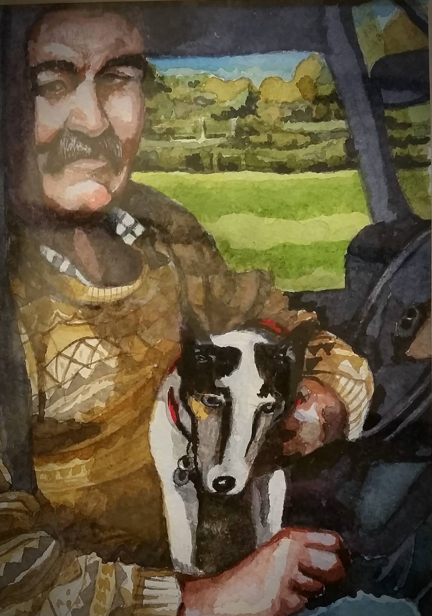 Watercolour, Lucy and Stan in the Barley Field at Saddington, unframed, £85