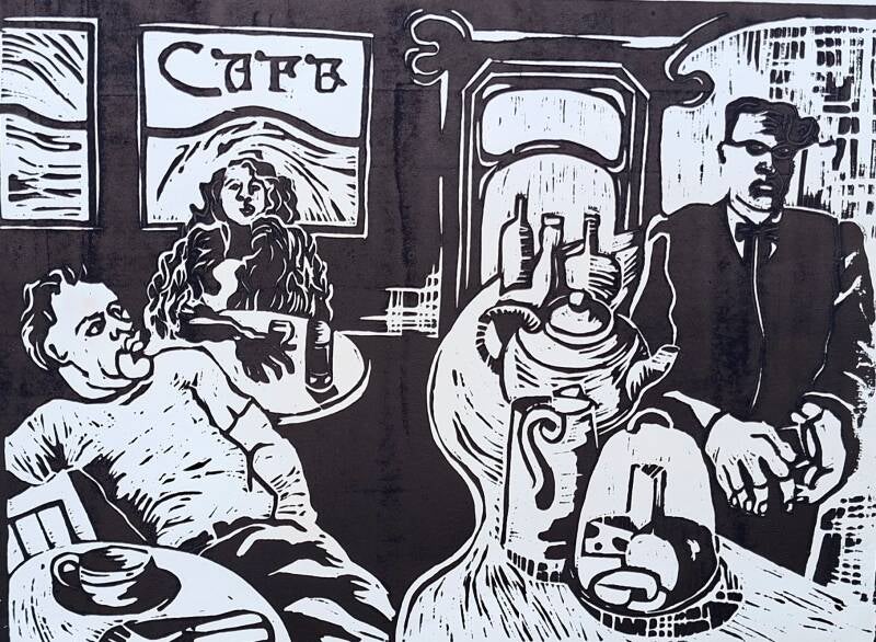 Lino-print. Paris Café Limited edition 1/2 £55