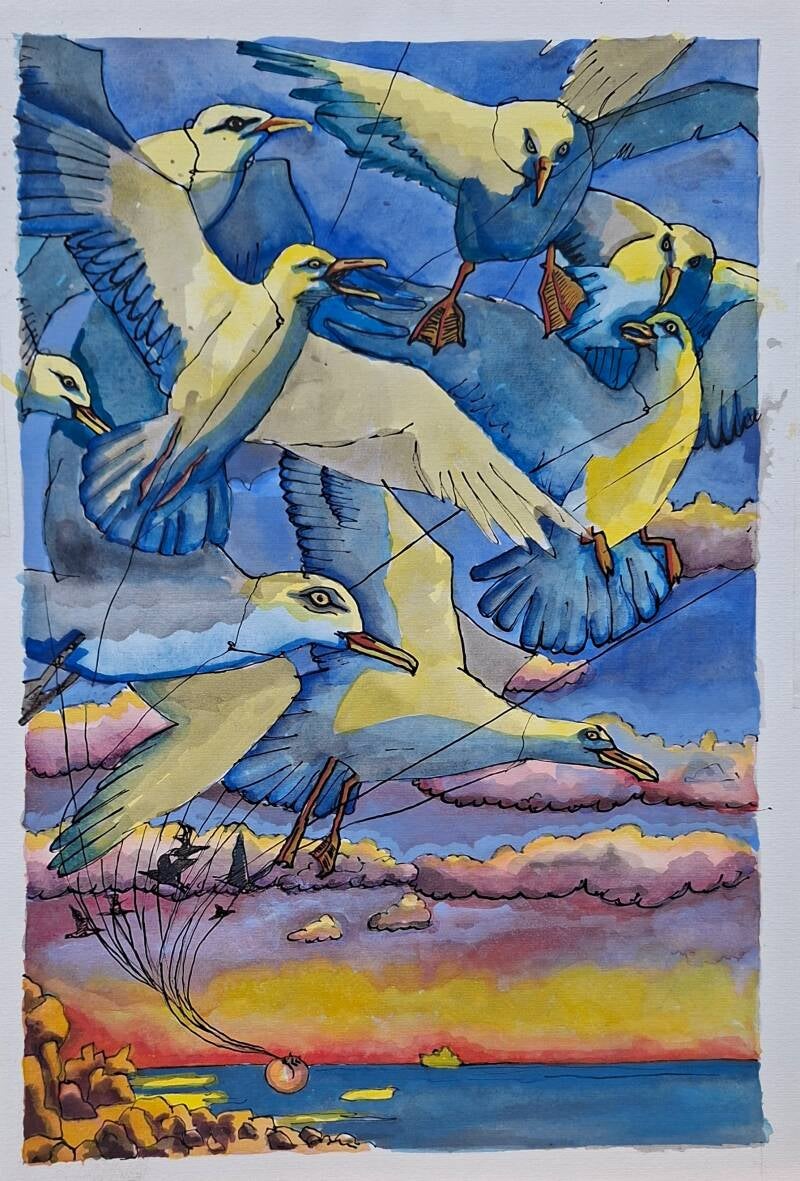 Watercolour Illustration for James and the Giant Peach by Roald Dahl. £99 unframed.