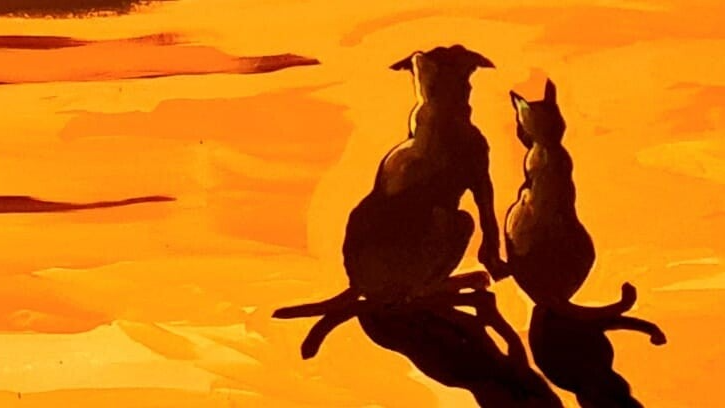 Watercolour, Percy and Lucy at Ash Tree Farm. NFS