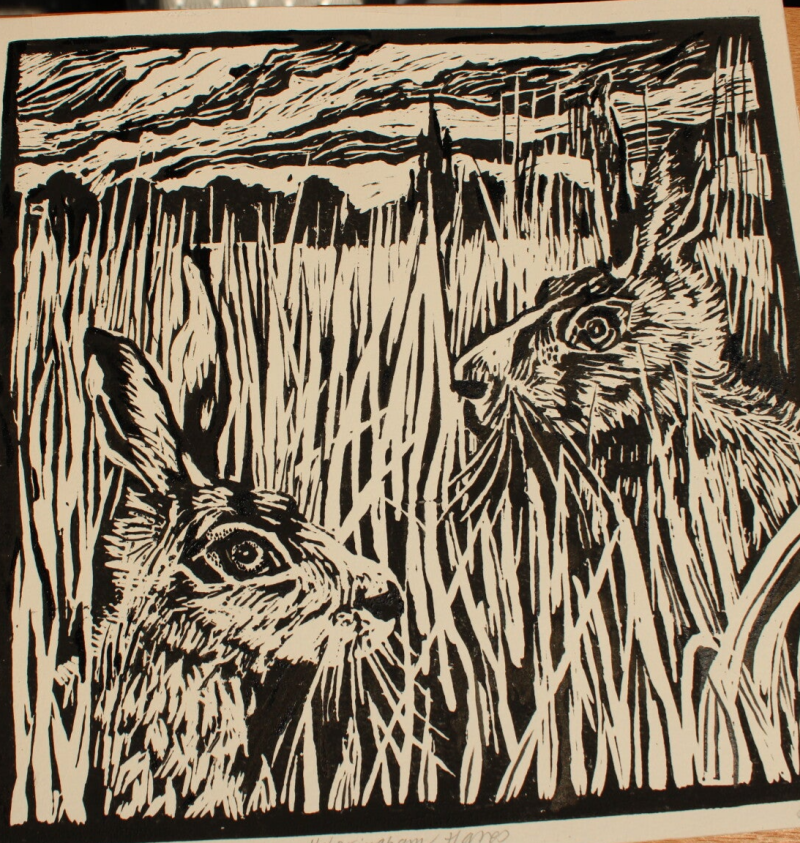 Limited Edition Lino-print, Helpringham Hares, £65